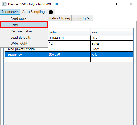 8. Para cambiar valores podemos escribir por ejemplo otra frecuencia diferente y seleccionaremos Send para enviar el nuevo valor en la electronica SSX.